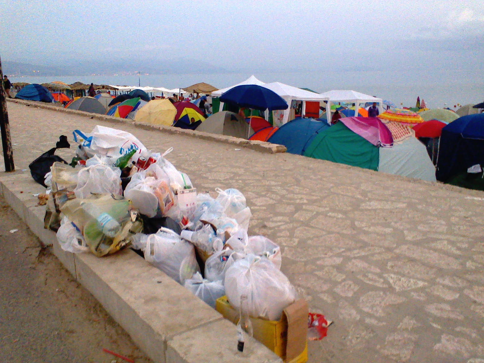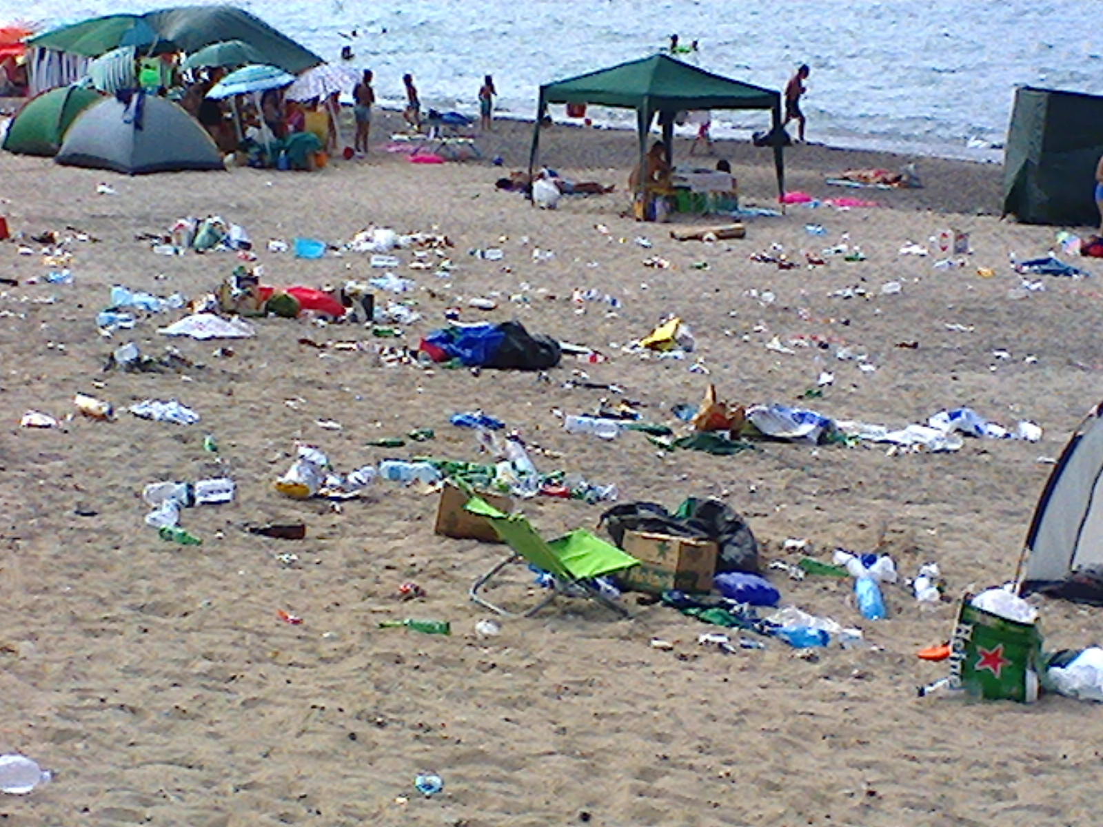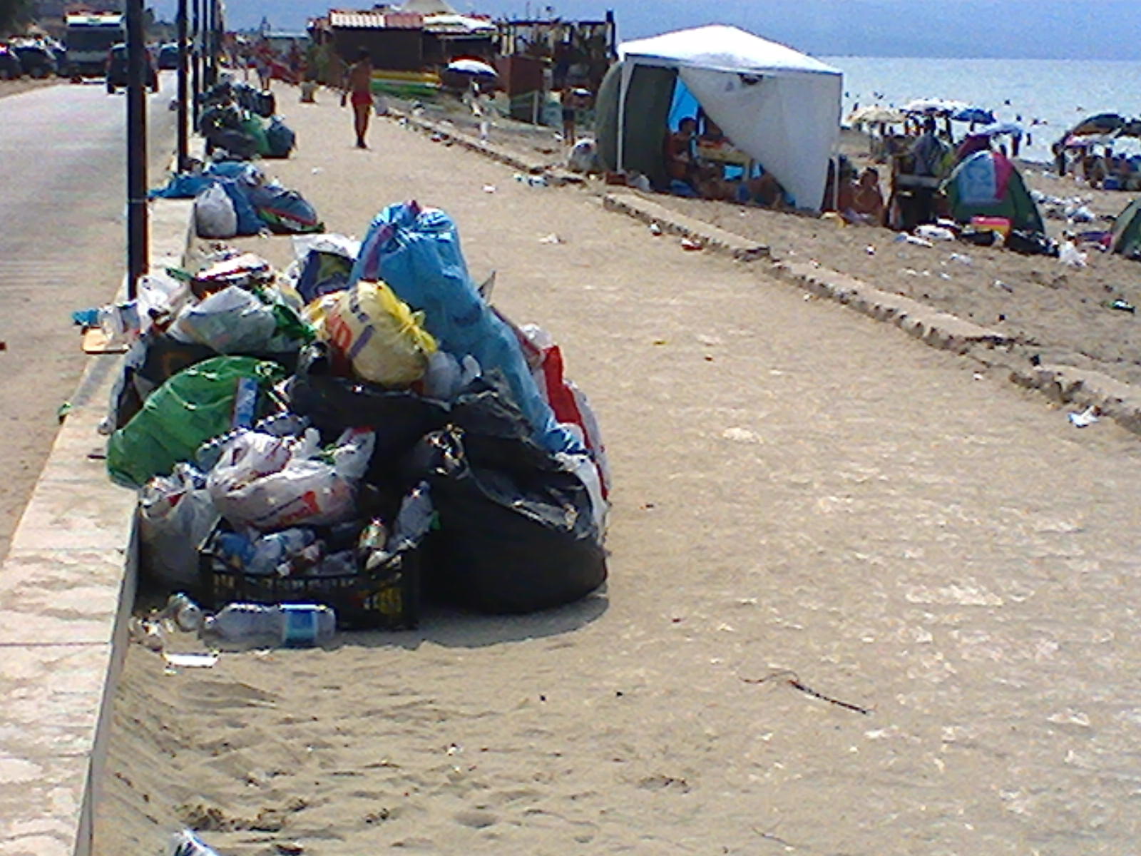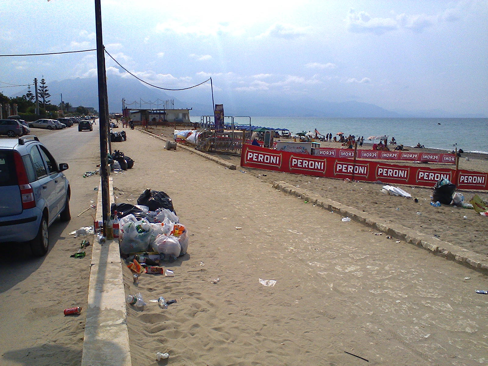 Lo spettacolo già la mattina del giorno di ferragosto è desolante: sacchi di immondizia costeggiano tutto il marciapiede, bottiglie di vetro, anche rotte, a decorare i muretti. La spiaggia è piena di rifiuti e lo resterà per due giorni. Oggi pomeriggio, giorno 16 agosto, la spiaggia risulta finalmente ripulita, sono stati riempiti più di tre cassoni scarrabili di immondizia dagli operai del comune, cassoni che da due giorni aspettavano di essere riempiti a conclusione del rito ferragostano.