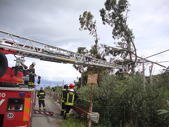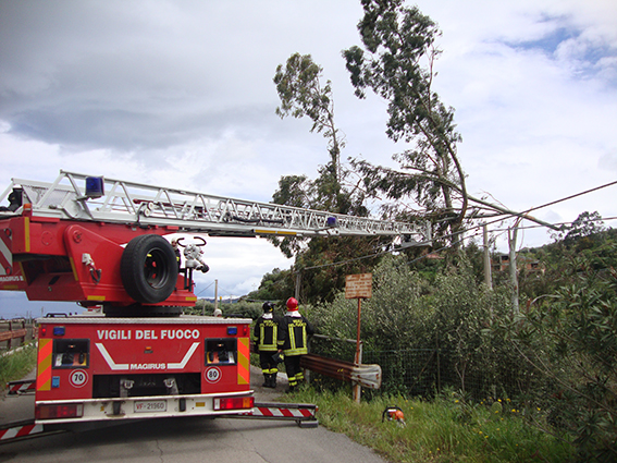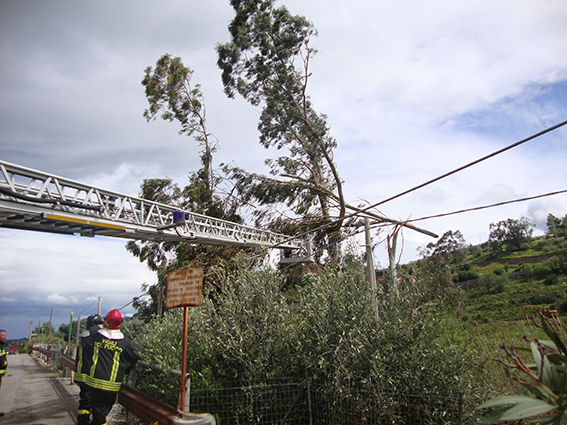 Una famiglia di quattro persone, con due anziani, è rimasta isolata per ore a causa di alcuni alberi caduti sulla stradina che collegava l’abitazione alla strada principale rimossi dai vigili del fuoco.