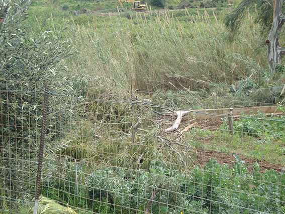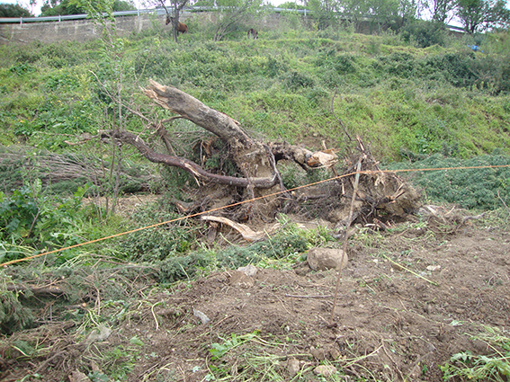 La tromba d’aria ha sradicato alcuni ulivi spostandoli di decine di metri dal luogo in cui erano piantati e divelto alcune piante di cipresso.