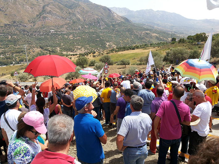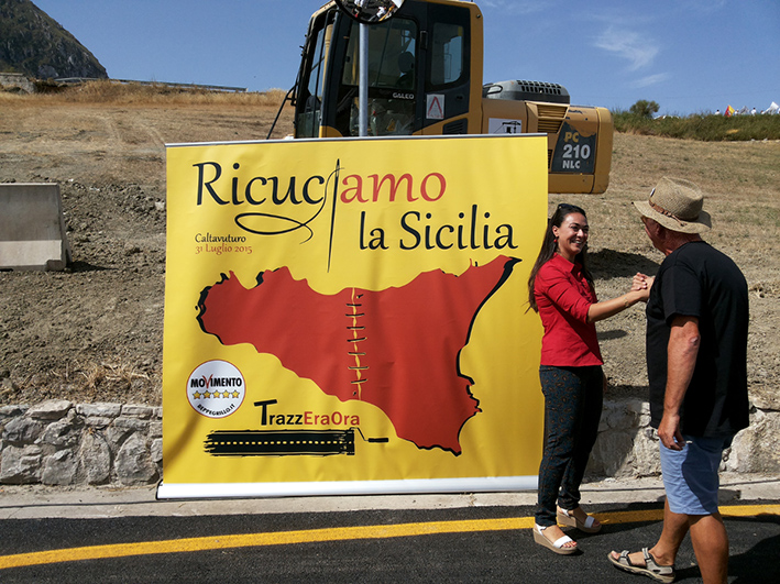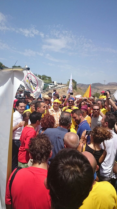 Alla manifestazione, nonostante il forte caldo, ha visto partecipare una grande folla composta dagli attivisti M5S arrivati da tutta la Sicilia e anche da tanti curiosi, comprese, oltre la Rai, diverse emittenti Tv. Alla manifestazione hanno partecipato diversi deputati Ars, deputati e senatori del parlamento italiano ed europeo del M5S, i quali, insieme al sindaco di Caltavuturo Giannopolo ed alcuni sindaci delle Madonie, hanno inaugurato la consegna della strada, effettuata dopo circa 37 giorni di intenso e dedicato lavoro. Ecco le interviste: “Questa di oggi è proprio la dimostrazione – dice Riccardo Nuti deputato del Parlamento – che la politica quando ha la buona volontà, può realizzare qualcosa di buono per i cittadini. Questa è una strada scorciatoia realizzata con il taglio degli stipendi dei cinque stelle, cosa che invece la politica non ha voluto fare, non ha voluto tagliarsi gli stipendi e non ha voluto provare una soluzione alternativa dopo il crollo dell’autostrada A19 Palermo-Catania”. Sicuramente la nostra non è una soluzione definitiva – continua Nuti – però è una soluzione tampone che riduce di 30/40 minuti il tragitto che attualmente era previsto. Questa è una dimostrazione di una azione concreta fatta per i cittadini”. “Quello che sta succedendo è meraviglioso – dice Claudia La Rocca, deputata M5S Ars – perchè è la prova che quando si uniscono le forze, ed i cittadini si uniscono insieme, si riesce a superare anche l’inadempienza di un governo che non sa dare risposte imminenti alla popolazione. Quindi quello che è successo è una sinergia ed energia fantastica”. Intanto aumentano i partecipanti con continui urli della parola “onestà”, nome assegnato anche con un cartello polemico “via dell’onestà”. Breve, polemico ma convinto, l’intervento di Giampiero Trizzino. “Perchè avete fatto questa strada? – dice – Perchè non l’ha fatto Crocetta”. A concludere la manifestazione, l’intervento serio e deciso di Luigi Di Maio “Siampo pronti a governare la Sicilia” ha detto, dopo essere arrivato proprio per l’inaugurazione e l’apertura della stessa strada avvenuta nello stesso pomeriggio.