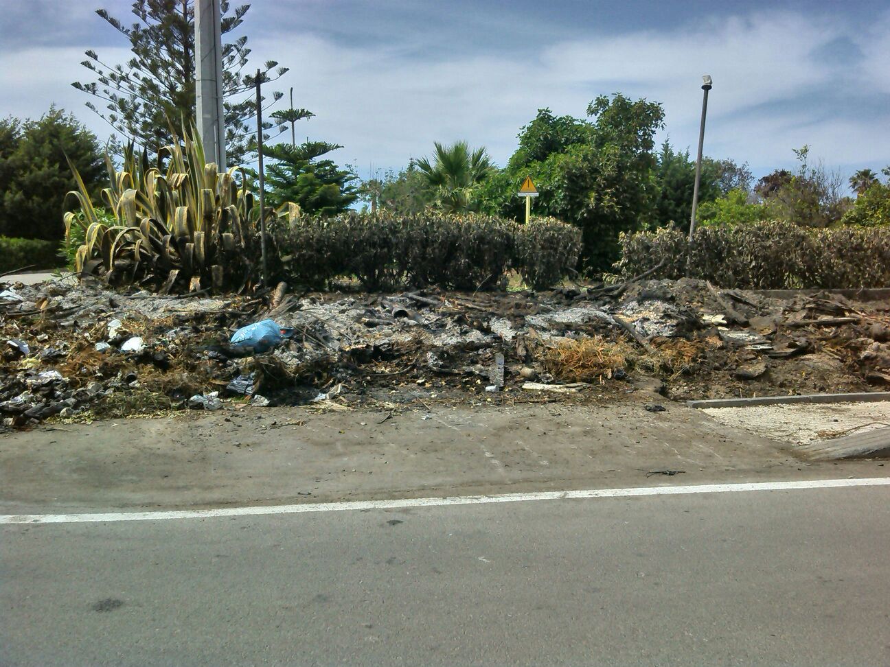 In prossimità del residence “Le Mimose”, è stato incendiato un cumulo di rifiuti e di scarti di potatura presumibilmente tra la notte scorsa e stamane, ancora fumante nelle prime ore del pomeriggio.