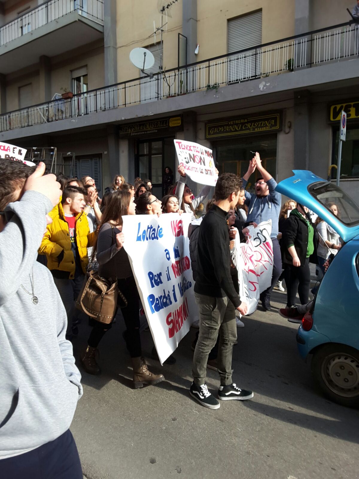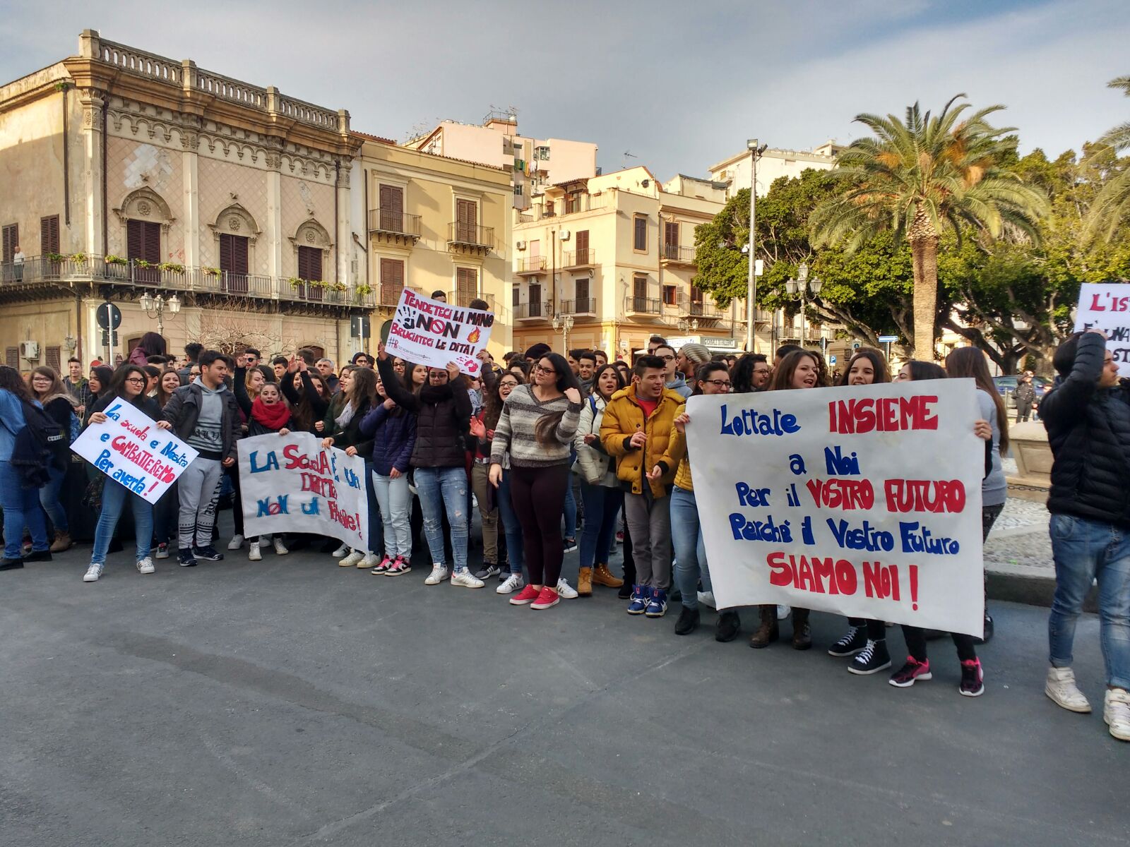 Studenti del liceo artistico di Termini in corteo. Protestano contro aule piccole, mancanza di strutture e promesse non mantenute