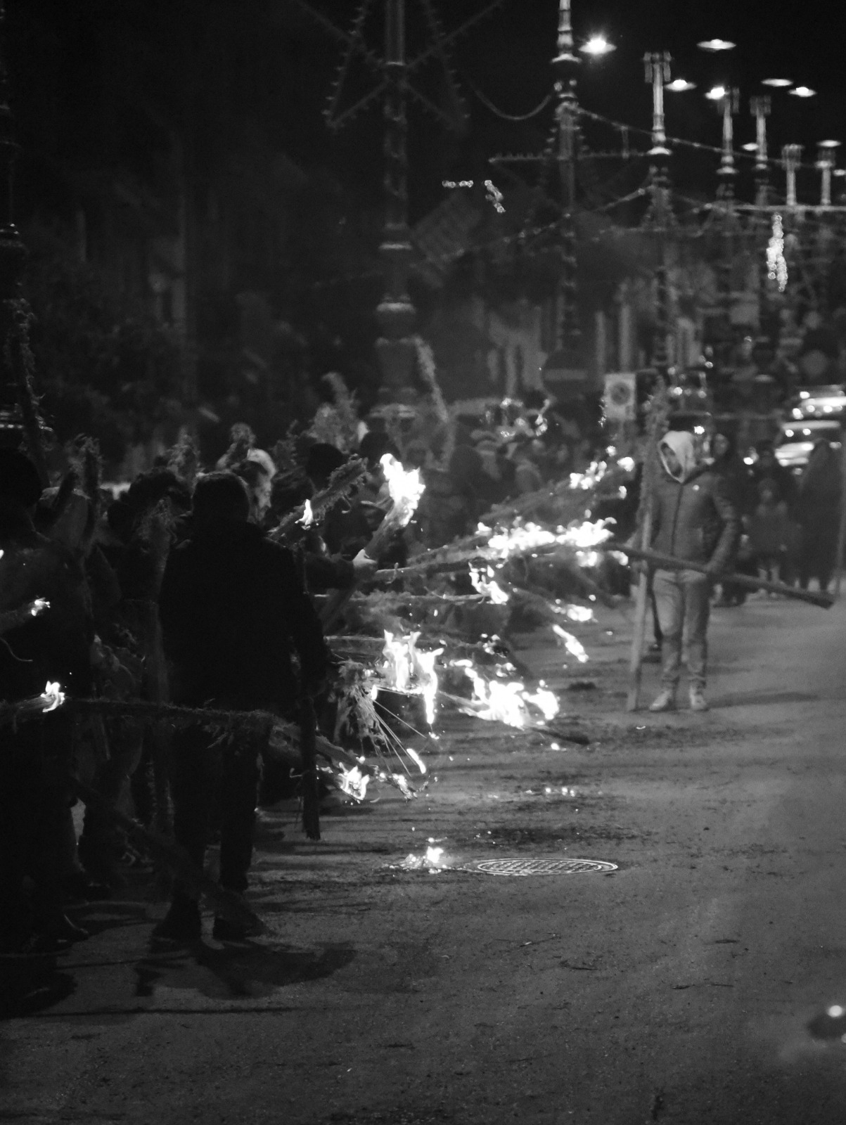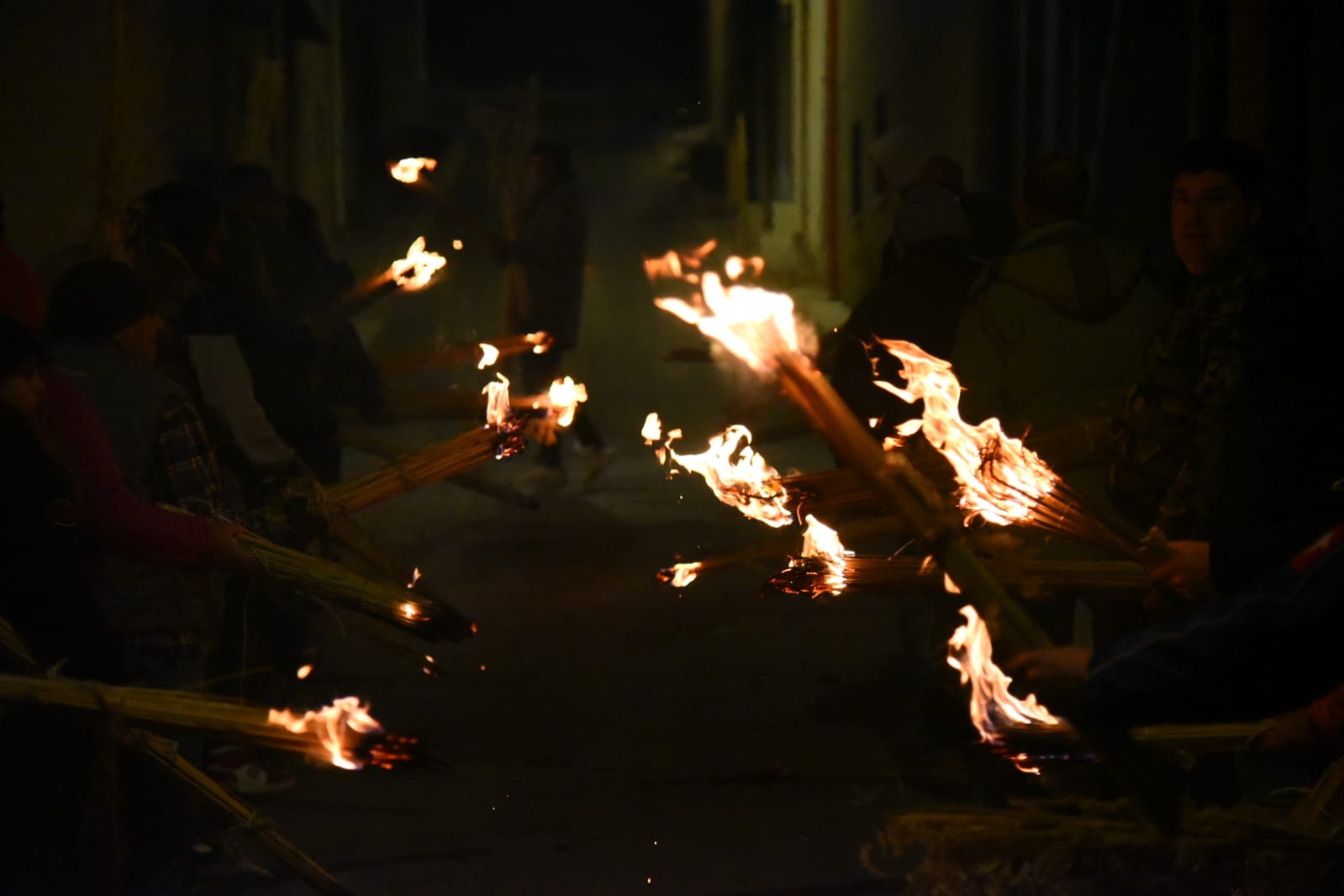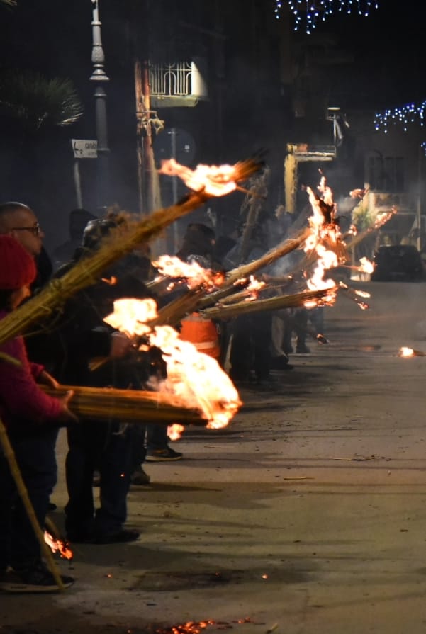 Le terre, all’epoca brulicavano di persone provenienti dal territorio messinese che venivano a Sciara proprio nel periodo della raccolta delle olive, perchè all’epoca erano una importante fonte di reddito per tutto l’anno. Questi contadini, che tanto desideravano partecipare alla messa, e quindi alla processione dell’aurora, dovevano scendere dalla montagna al buio, perchè ovviamente si camminava a piedi, al massimo con muli, asini e carretti. Non esistevano dunque mezzi di locomozione (macchine, trattori ecc), ma non esistevano neanche le torce elettriche. L’ingegno umano, facendo di necessità virtù, ha pensato bene di infasciare degli steli di “disa” (ampelodesmo), dando così vita ad una fiaccola. In questo modo, riuscivano intanto a farsi luce lungo la strada, ed anche a riscaldarsi fino a quando giungevano in paese, e con la luce prodotta dal fuoco, accompagnavano la “Mmaculatedda” lungo le vie del paese, fino al suo rientro in chiesa.