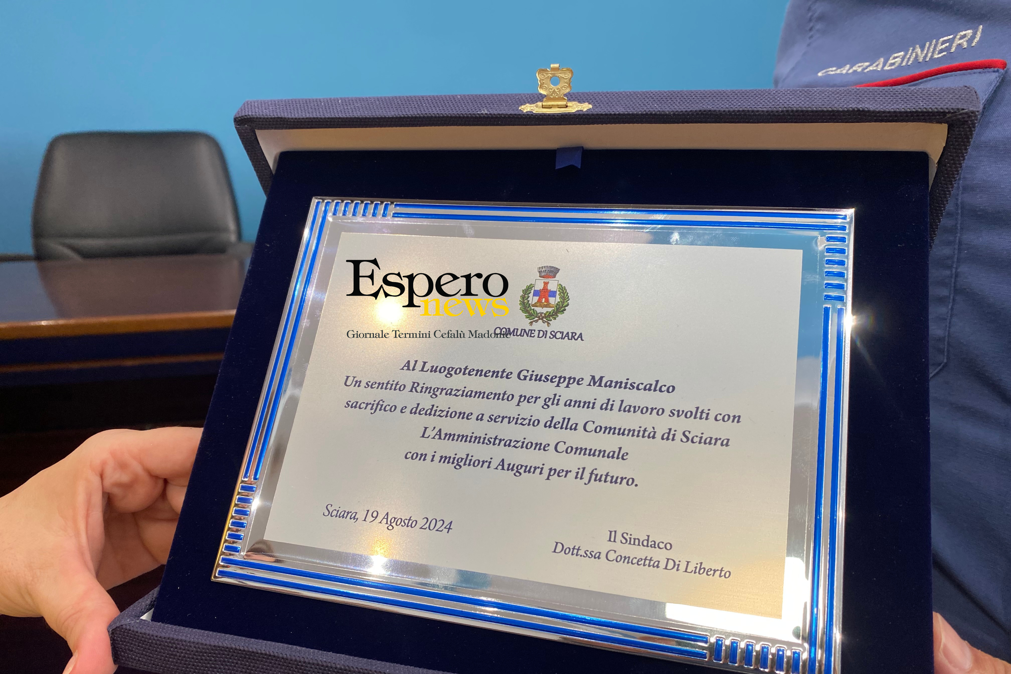 Dopo 22 anni di servizio presso la stazione dei Carabinieri di Sciara, il luogotenente Giuseppe Maniscalco, arrivato nel lontano 2002 è stato trasferito a Palermo presso il Nucleo Operativo Compagnia di “Piazza Verdi”.