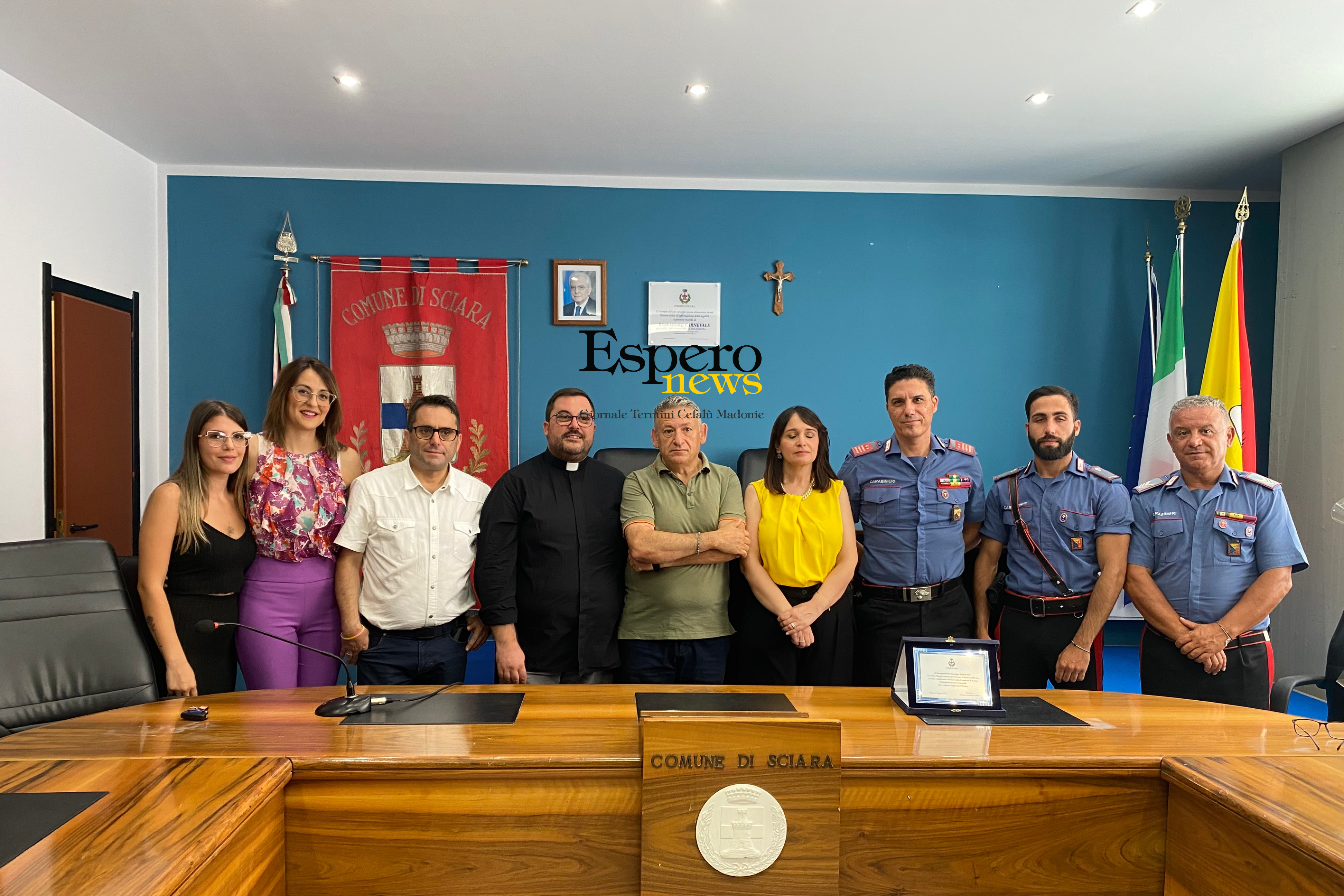 Presente anche il parroco Don Nunzio Pomara il quale ha voluto sottolineare l’importante collaborazione tra i Carabinieri e la Chiesa di Sciara in diverse occasioni. Al termine è stata consegnata una targa dal sindaco ed una pianta dai dipendenti comunali. Importante la presenza del brigadiere Antonino Passamonte e del maresciallo Cristian Manfrè, il quale quest’ultimo sarà il reggente della stazione dei Carabinieri di Sciara.