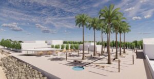 Lungo l’asse principale, via Lungo Molo, che attraversa l’area, mobilità e paesaggio si incontrano. Accanto alla carreggiata, un viale pedonale alberato e una pista ciclo-pedonale disegnano un percorso “lento” e panoramico, pensato per chi desidera vivere il mare. Il cuore del progetto è il Giardino Est, ampio spazio pubblico aperto sulla spiaggia, dove palme, panchine illuminate e aree ombreggiate creano un’atmosfera accogliente e mediterranea. A completare l’intervento, una rete ordinata di parcheggi e un luogo simbolico di forte impatto visivo: la “Piazza araba”, primo affaccio sul mare per chi arriva dalla città. Qui ci sarà un piccolo giardino caratterizzato da una trama di alberi relativamente bassi, circondati da panchine rotonde illuminate e, con successivo appalto, da un “segno d’acqua” che evocherà la cultura araba, restituendo al visitatore un’esperienza sensoriale di luce e quiete. In futuro, il fronte mare ospiterà anche una caffetteria panoramica, non compresa nell’attuale fase di lavori, pensata come punto d’incontro e di socialità. Via Lungo Molo diventa così un luogo da attraversare e da vivere, un progetto che coniuga tecnica e bellezza, memoria e contemporaneità, offrendo alla città un nuovo spazio di relazione tra terra e mare.