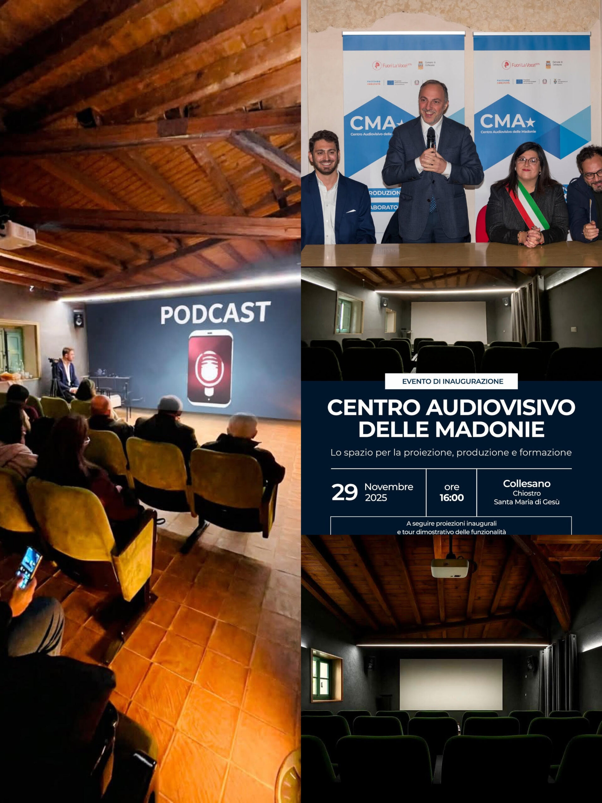 Sarà inaugurato il 29 novembre 2025 nel Chiostro Santa Maria di Gesù di Collesano, il Cma – Centro Audiovisivo delle Madonie, un progetto per creare nuove opportunità occupazionali promosso da Fuori La Voce! Ets con il comune di Collesano ed il sostegno della Città Metropolitana di Palermo e del Parco delle Madonie.
