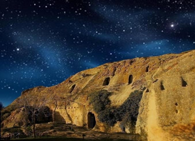 Ipogei della Gurfa (Elaborazione grafica con cielo stellato di Elisa Chimento)