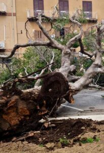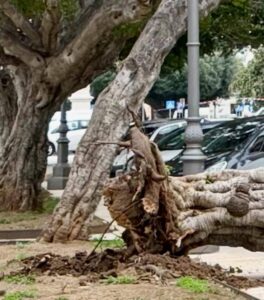 “Nel breve volgere di una settimana – scrive in una nota il Comitato – accade che due alberi secolari cadono come fuscelli a causa del vento che, come spesso accade a Termini Imerese, soffia impetuoso.