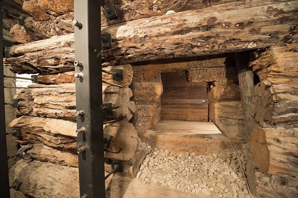 Fig. 5 – Camera funeraria interna della “Tomba del re Mida” a Gordion in Frigia-Turchia, in un tumulo con una doppia parete di tronchi d’albero e legname datata attorno al sec. VIII a.C. (Sono debitore per l’immagine da un post FB del 10.10.2022 di Merike Joosep
