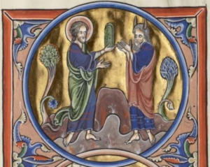 E poiché nel Medioevo l’immagine ebbe un ruolo fondamentale nel veicolare messaggi e concetti, credetemi se dico che, quando ho visto l’immagine che segue, una domanda me la sono posta. La scena è celebre: si tratta della consegna dei Comandamenti a Mosè.